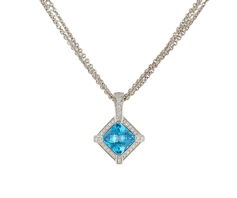 Blue Topaz and 0.55ctw Diamond Cushion Shaped Multi Strand Pendant Necklace 18K
