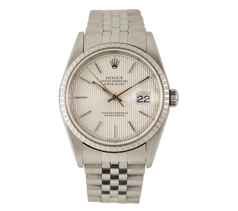 2008 Rolex Datejust 16220 36MM Engine Turned Bezel Stainless Steel Watch