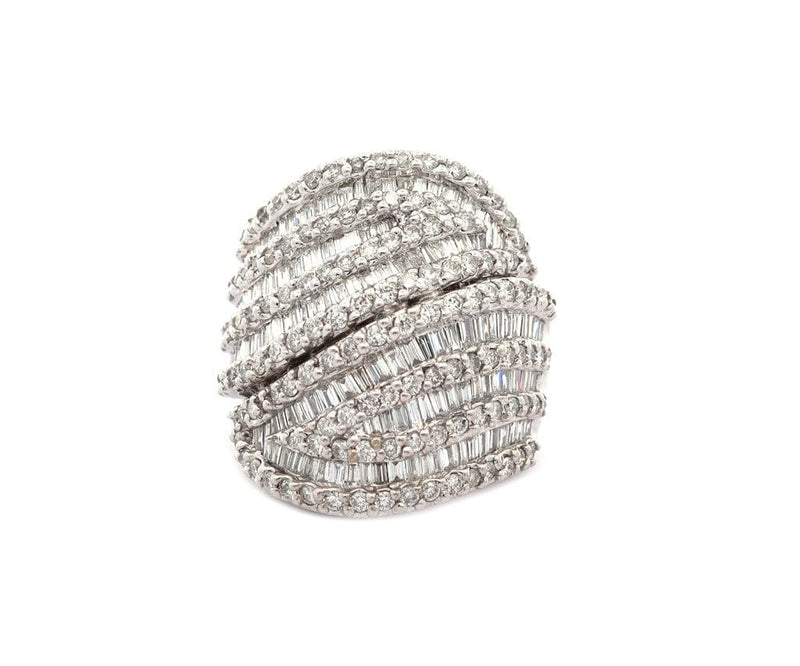 3.80ctw Round and Baguette Diamond Frame Wide Multi Row Ring in 18K