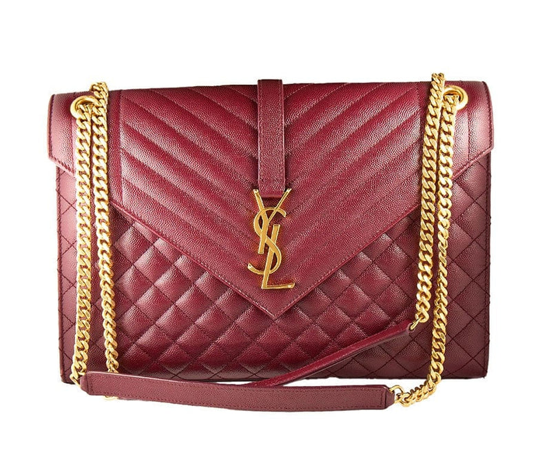 YSL Rouge Cabernet Medium Envelope Grain de Poudre Leather Handbag W/Dustbag