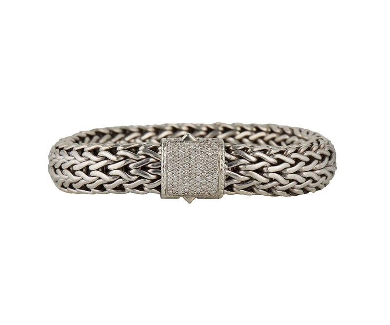 John Hardy 0.77ctw Pave Diamond 13MM Classic Chain Wheat Bracelet in Sterling