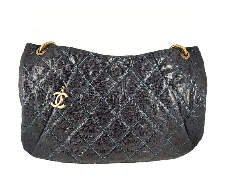 Chanel Blue Crumpled Grained Calfskin Coco Pleats Hobo Bag W/Papers & Dustbag