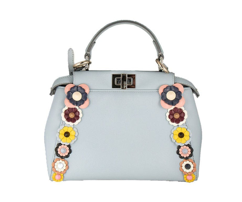 Fendi Light Blue Nappa Flowerland Mini Peekaboo Iconic Satchel W/Box and Dustbag