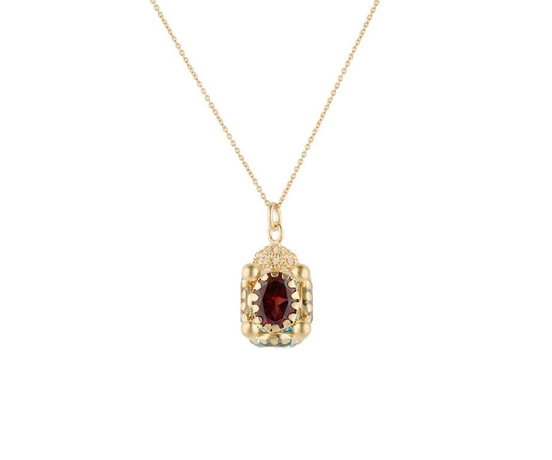 Multi Gemstone Lantern Style Pendant Necklace in 14K