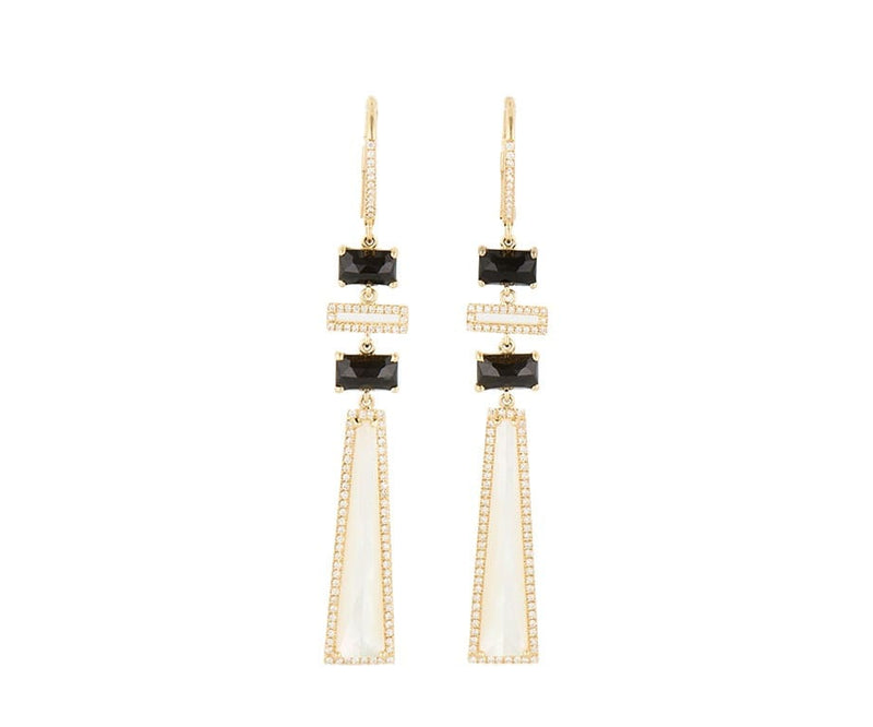 New Doves by Doron Paloma White MOP Black Onyx0.44ctw Diamond Dangle Earrings 14K
