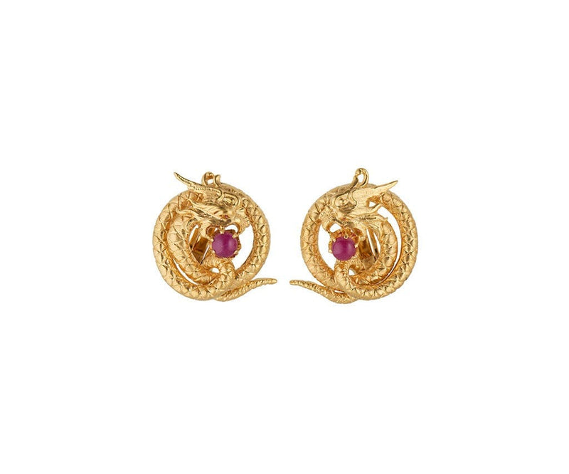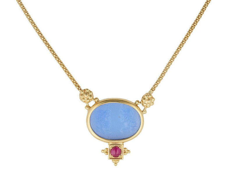 Blue Intaglio Glass and Red Ruby Cabochon Heirloom Pendant Necklace in 18K