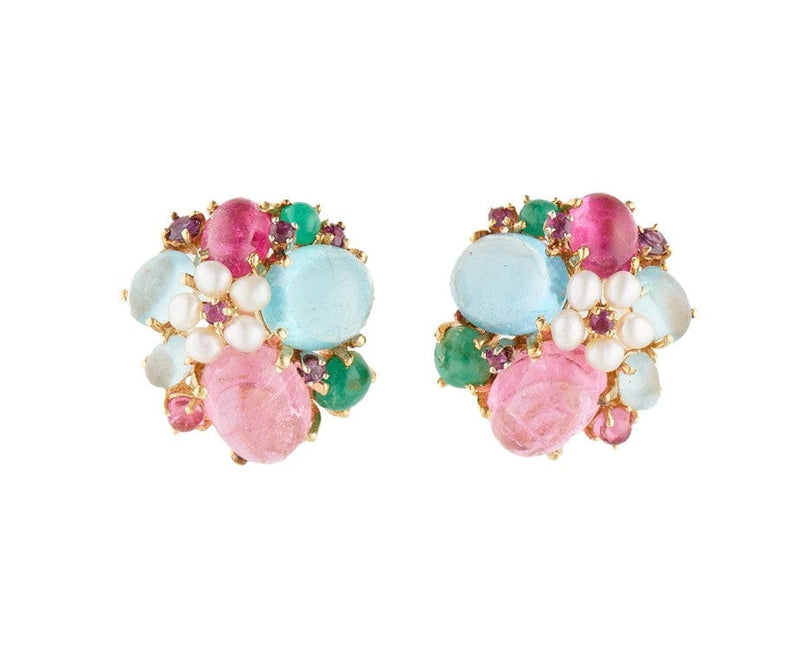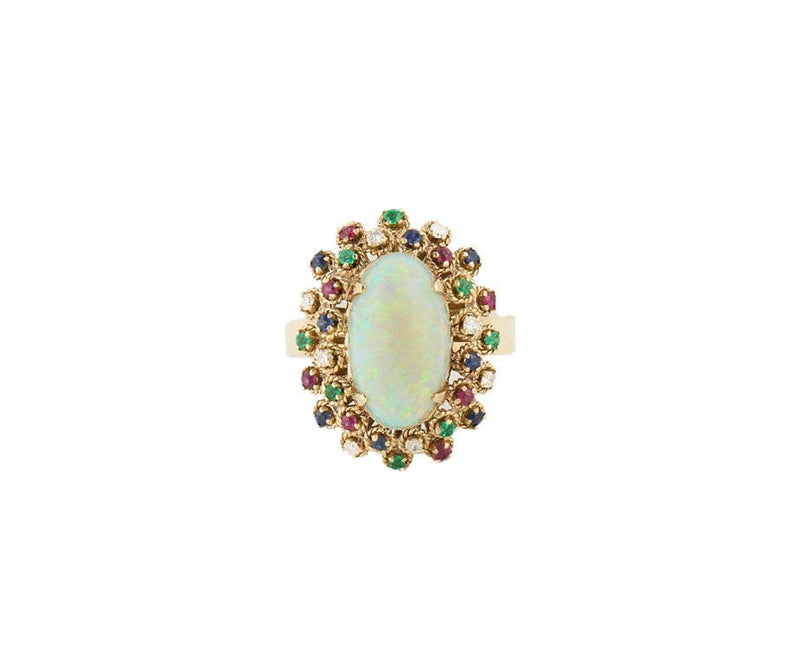Oval Opal Cabochon and MultiGemstone Double Frame Cocktail Ring in 14K