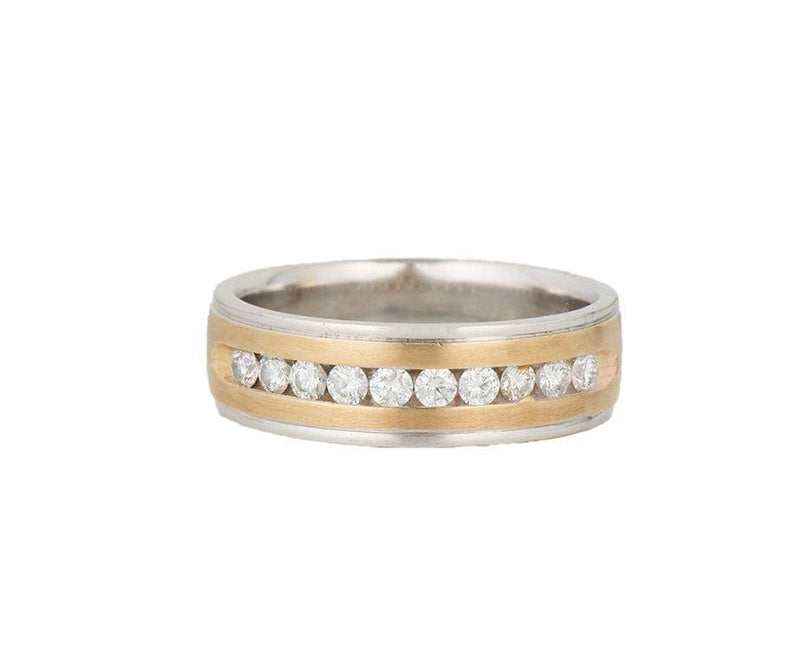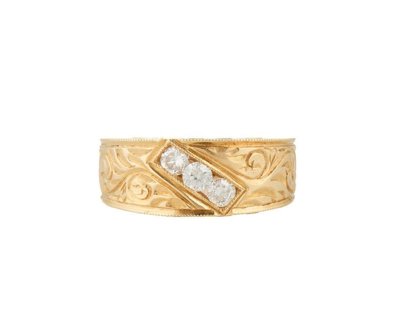 Gents 1.00ctw Round Diamond Three Stone Milgrain Scroll Band Ring in 14K