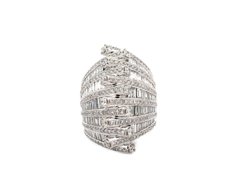 4.50ctw Round and Baguette Diamond Multi Row Dome Ring in 18K