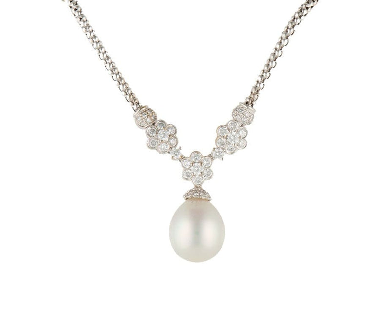 12.5MM South Sea Pearl and 1.40ctw Diamond Pendant Necklace in 18K