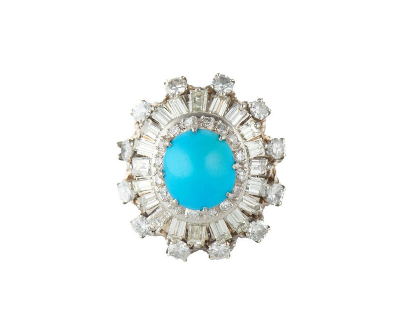 Turquoise Cabochon and 2.10ctw Diamond Triple Frame Cocktail Ring in Platinum