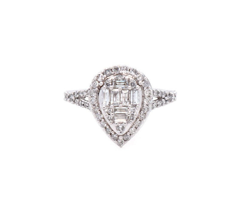 0.50ctw Baguette and Round Diamond Pear Shaped Frame Ring in 10K