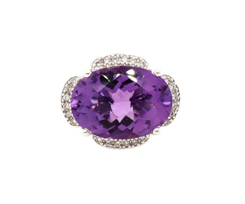 11.0ct Oval Amethyst and 0.25ctw Diamond Frame Ring in 14K