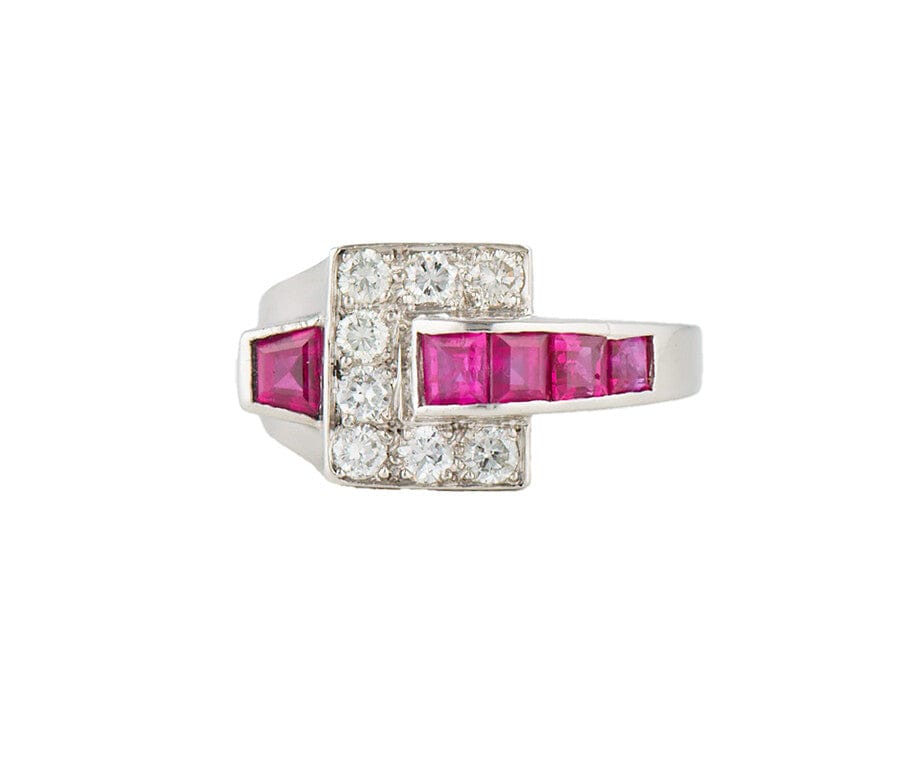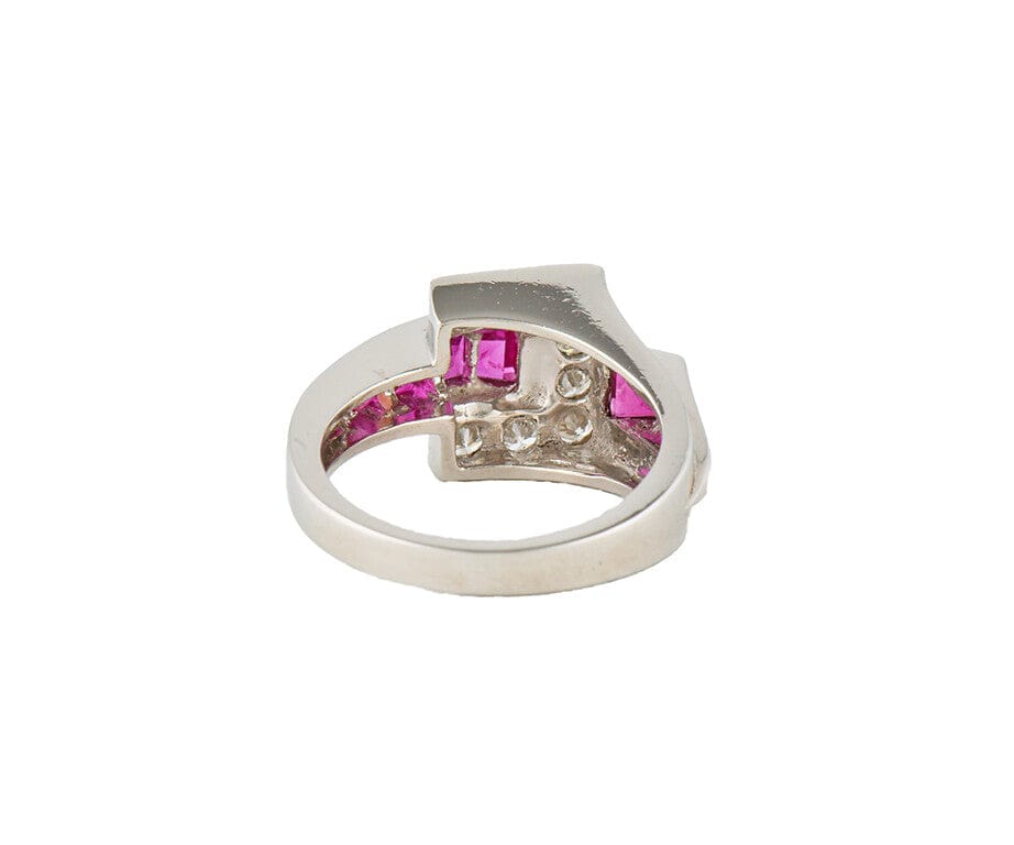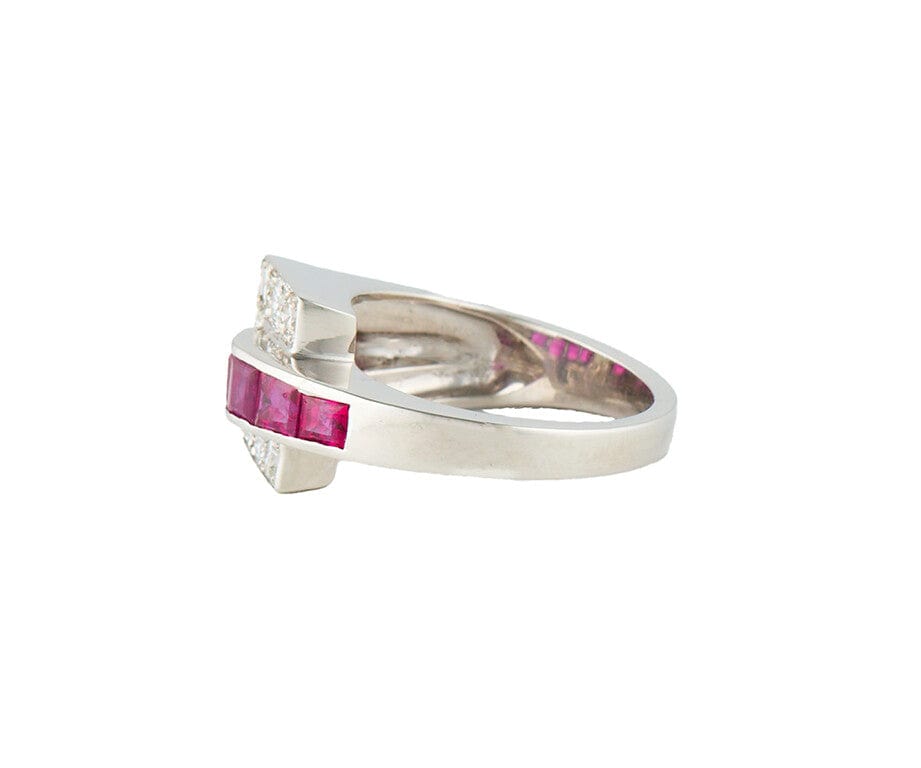 0.50ctw Diamond and 0.75ctw Ruby Geometric Style Ring in Platinum