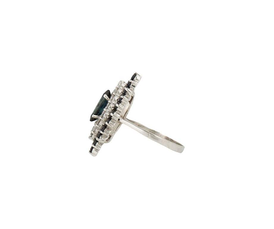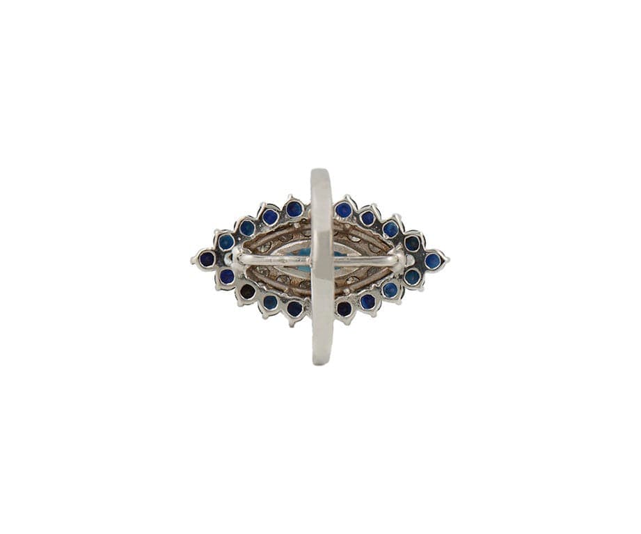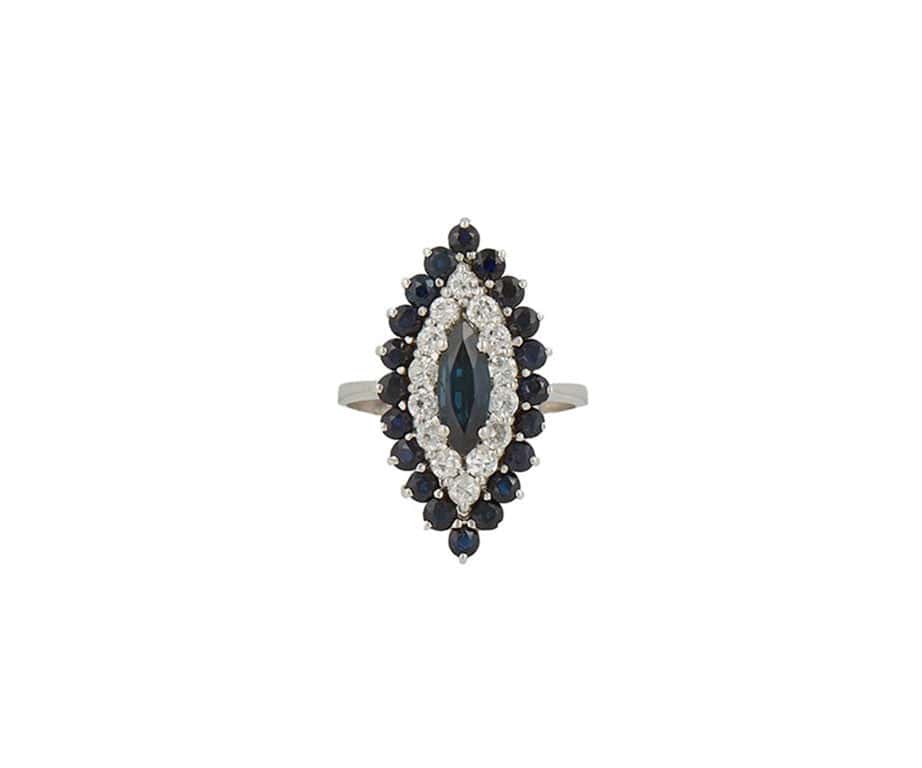 0.55ctw Diamond and 1.50ctw Sapphire Marquise Shaped Double Frame Ring in 14K