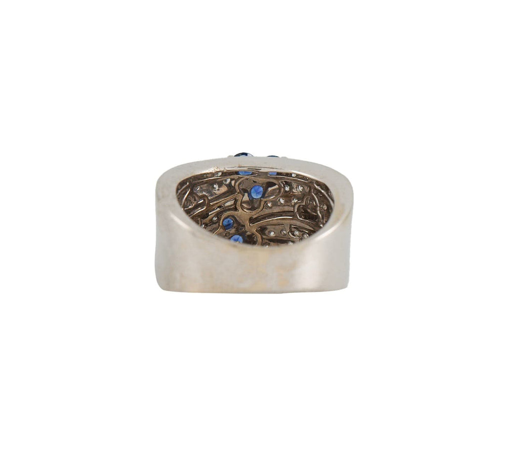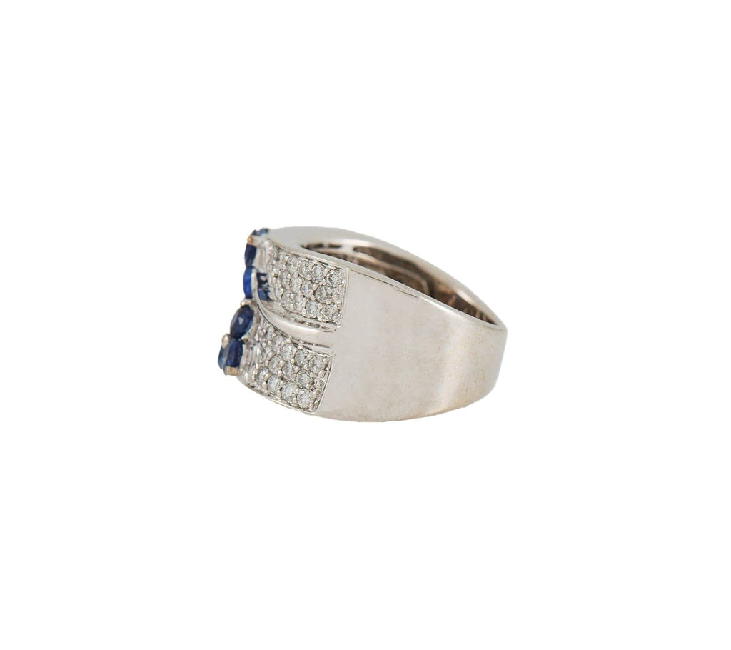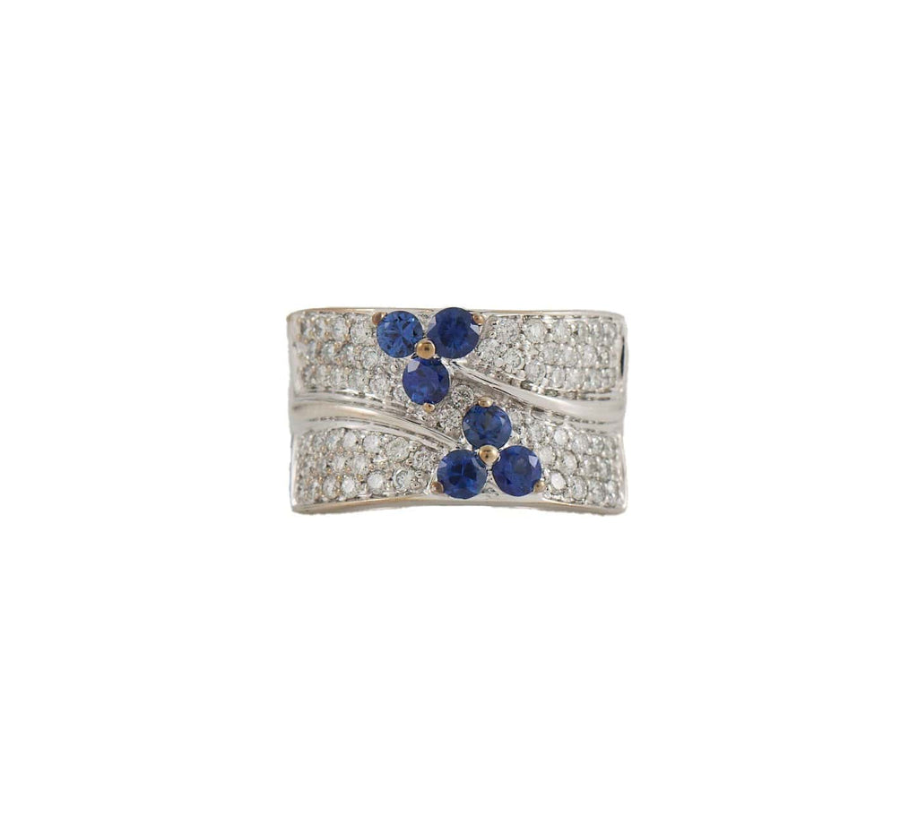 0.75ctw Sapphire and 1.50ctw Pave Diamond Flower Multi Row Band Ring in 18K