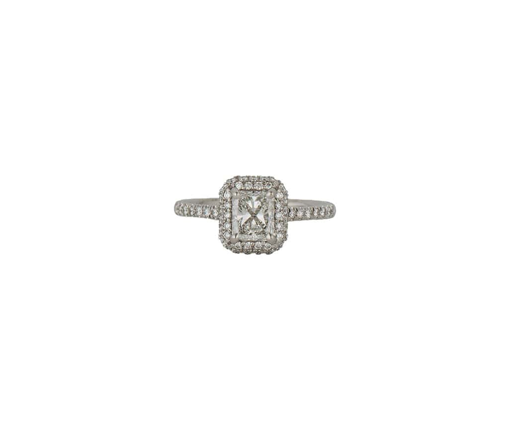 0.86ct Radiant and 0.60ctw Pave Diamond Double Frame Engagement Ring in 14K