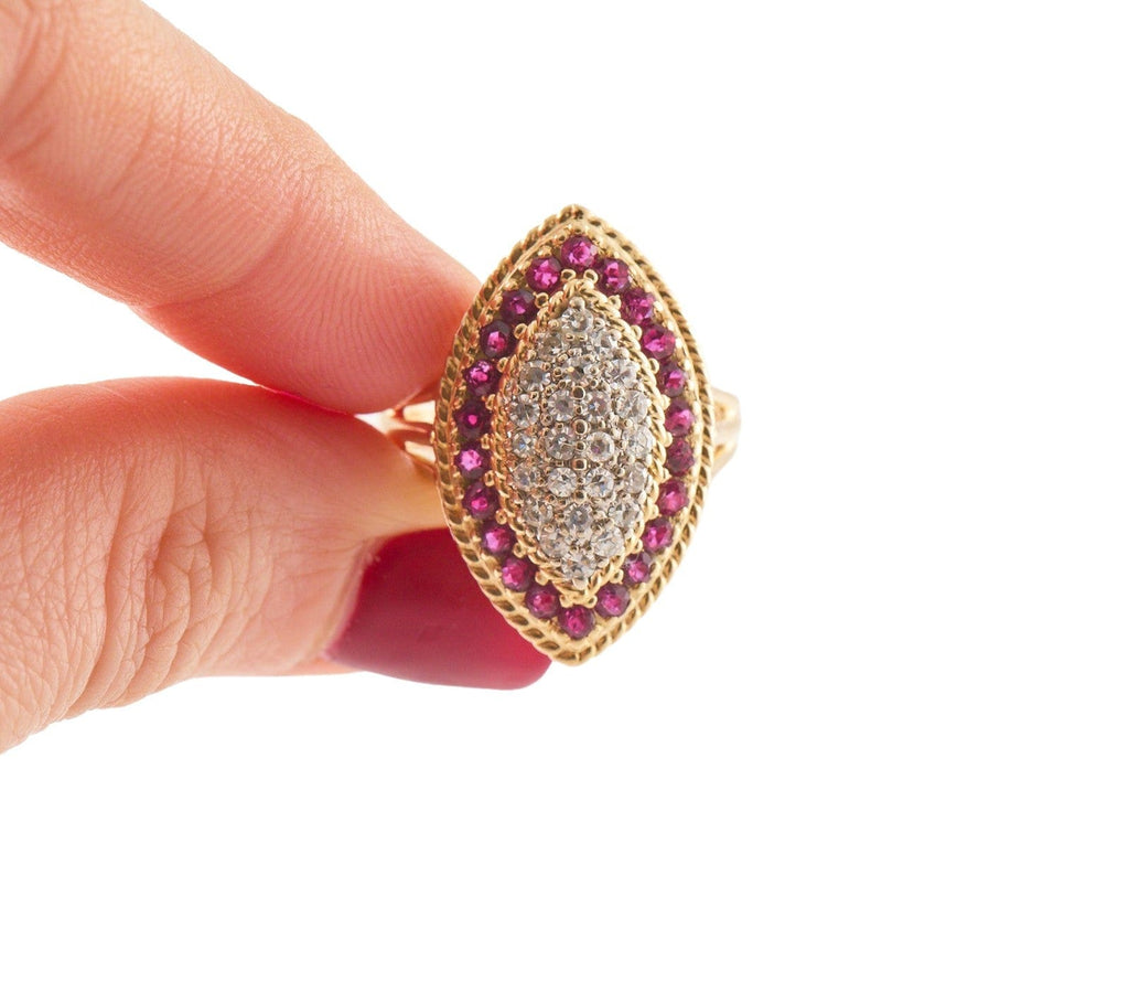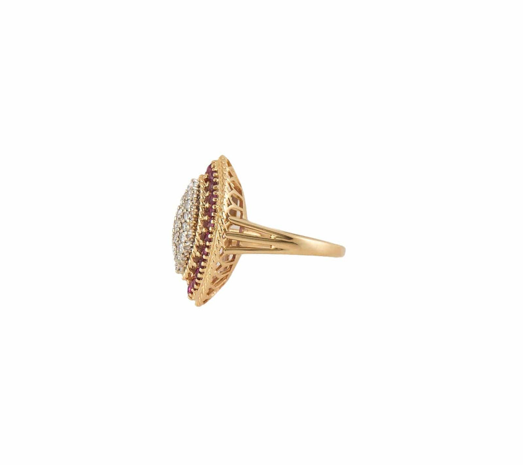 0.88ctw Rubies and 0.75ctw Single Cut Diamond Cocktail Ring in 18K