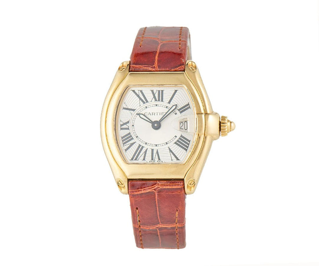 05 Cartier Roadster Date 2676 32 X 37MM Silver Dial 18K Ladies Watch