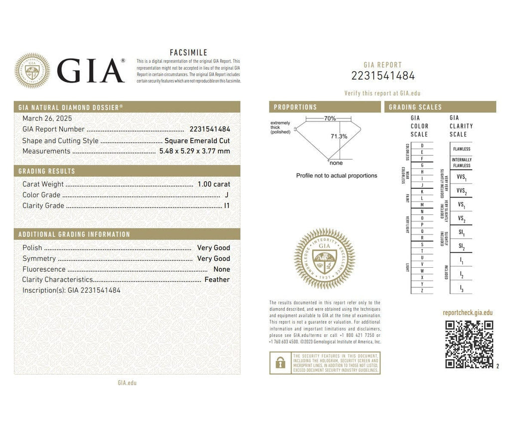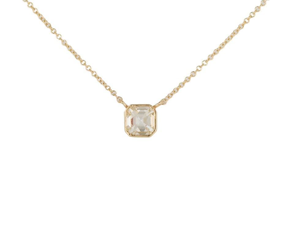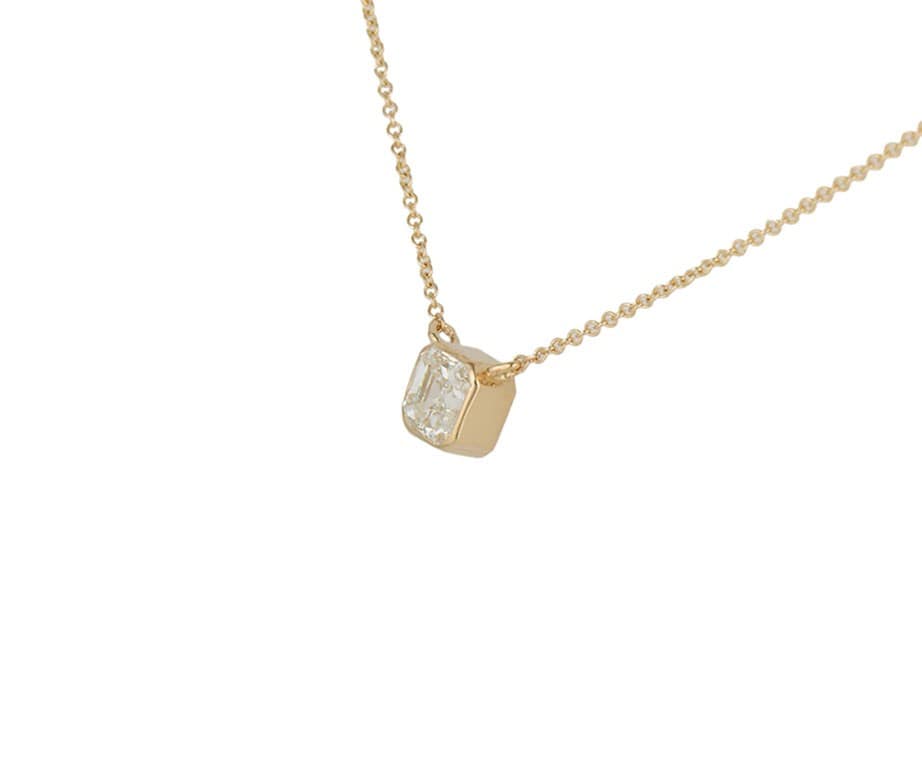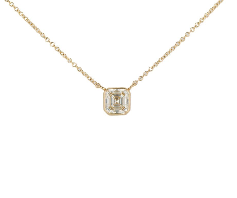 1.00ct Asscher Cut Diamond Solitaire Bezel Set Pendant Necklace in 14K