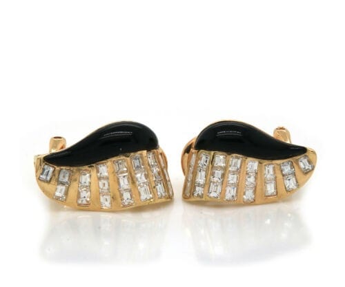 1.00ctw Baguette Diamond and Onyx Earrings in 18K