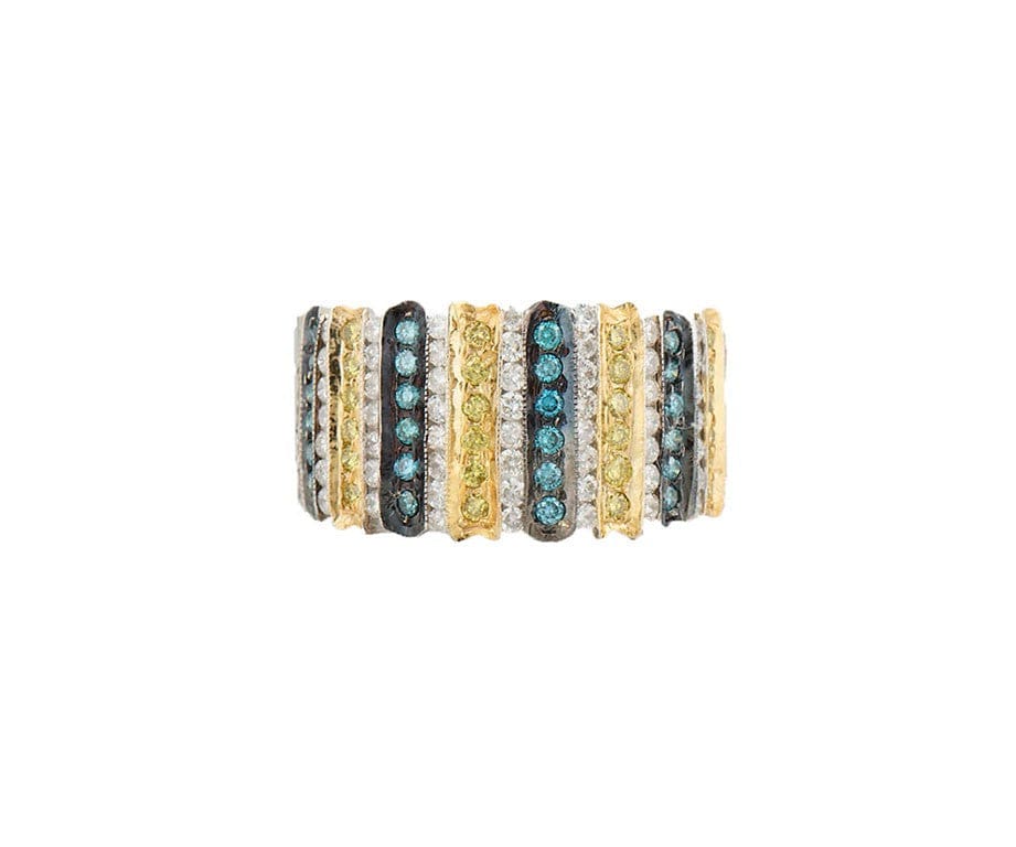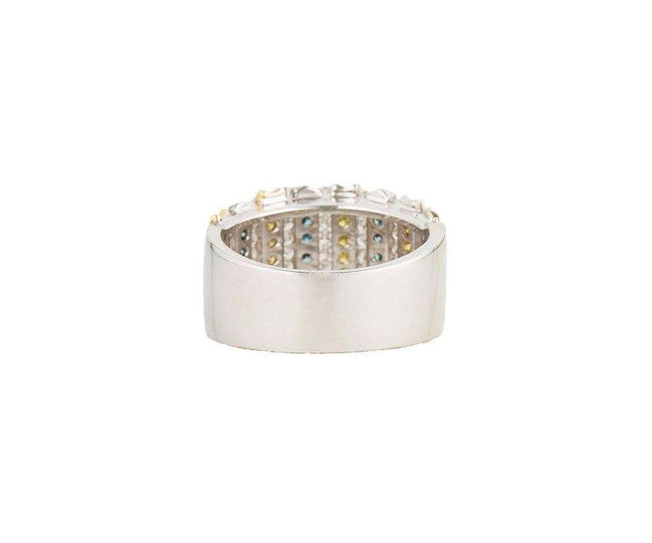 1.10ctw White Irradiated Teal & Irradiated Yellow Diamond Multi Row Ring 14K