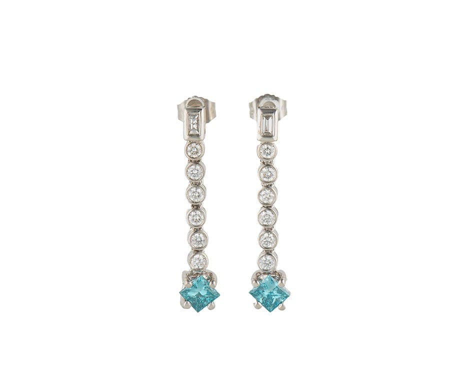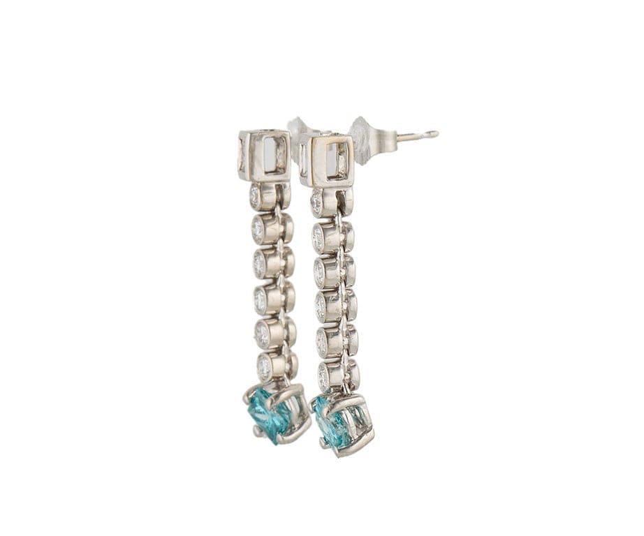 1.20ctw Irradiated Blue Diamond & 0.50ctw White Diamond Dangle Earrings in 14K