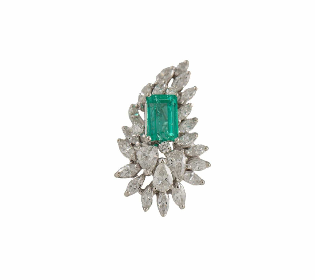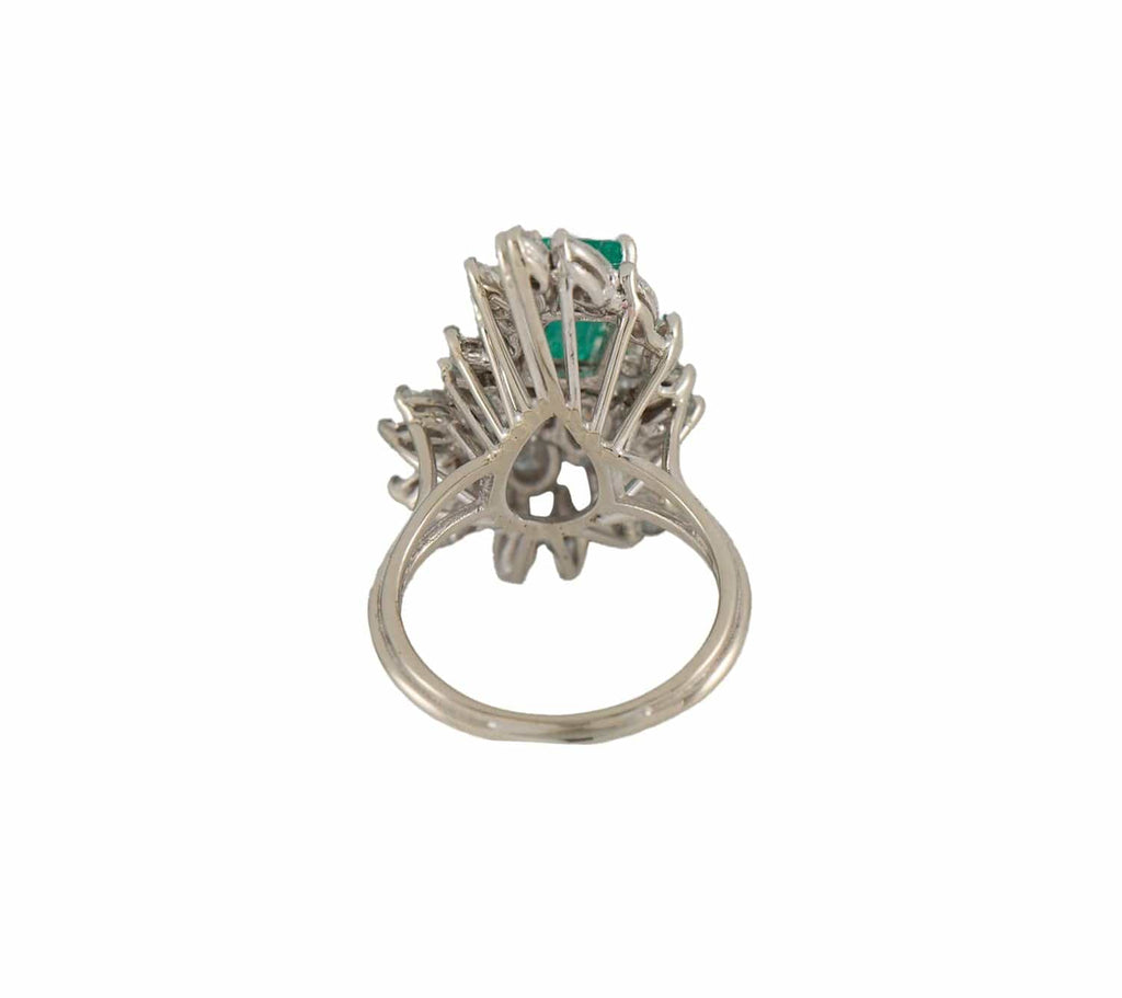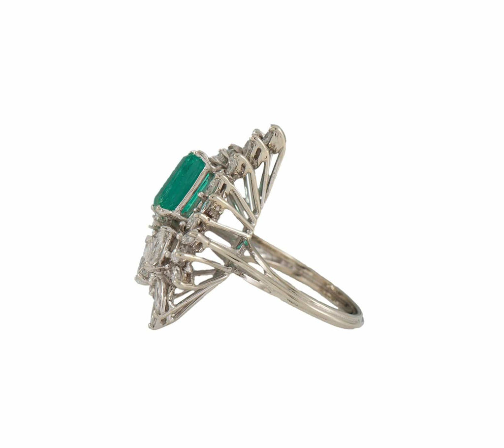 1.50ct Emerald Cut Emerald and 2.25ctw Marquise Diamond Cocktail Ring in 14K
