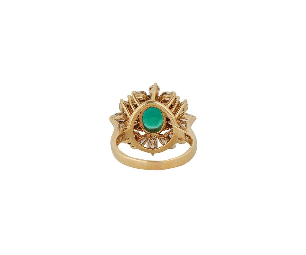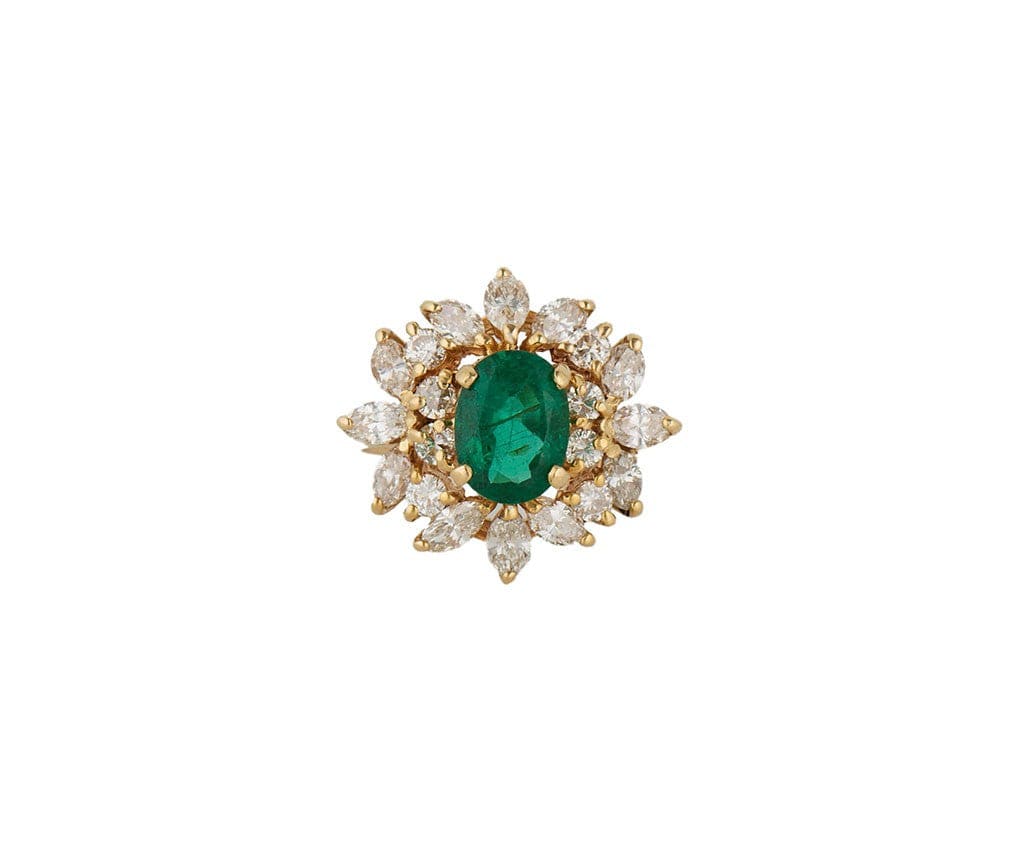 1.75ct Oval Emerald and 1.20ctw Round and Marquise Diamond Frame Ring in 18K
