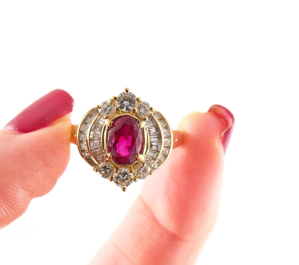 1.97ct Oval Ruby and 1.10ctw Diamond Double Frame Fine Ring in 18K