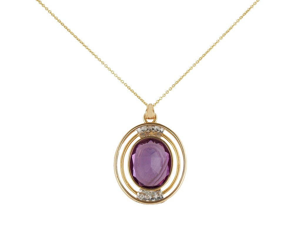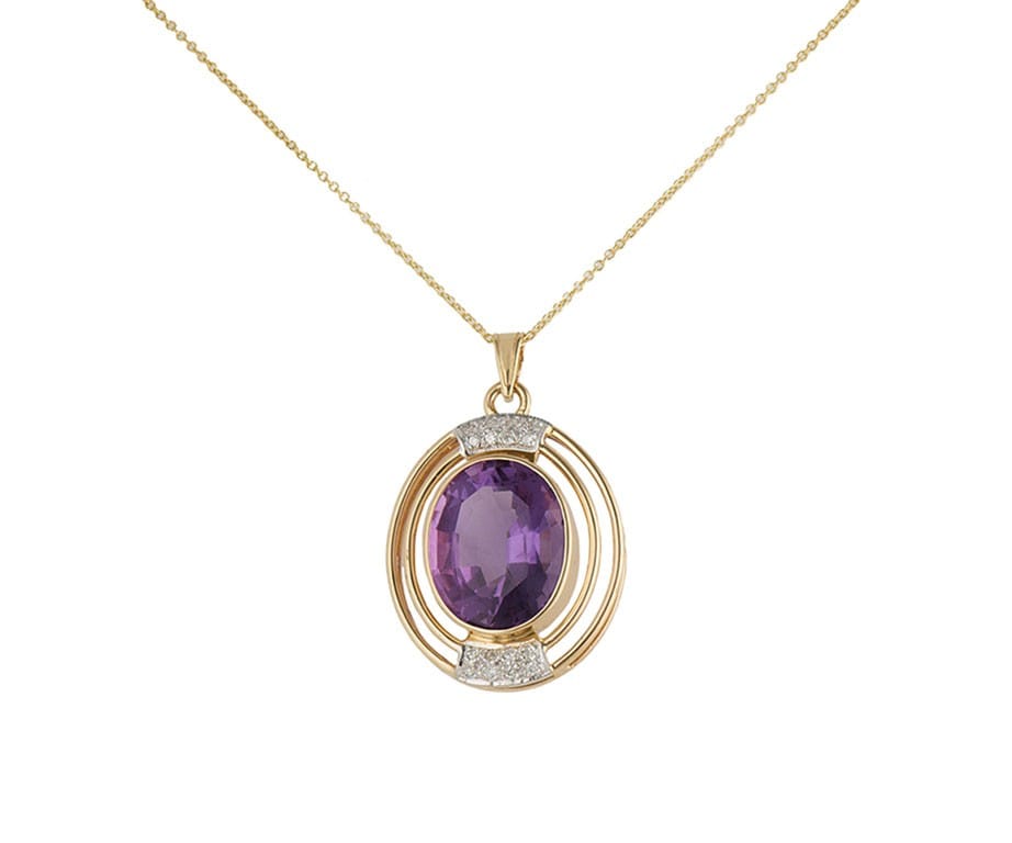 11.25ct Oval Amethyst and 0.35ctw Pave Diamond Pendant Necklace in 14K