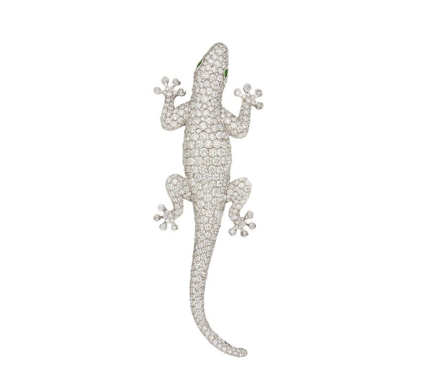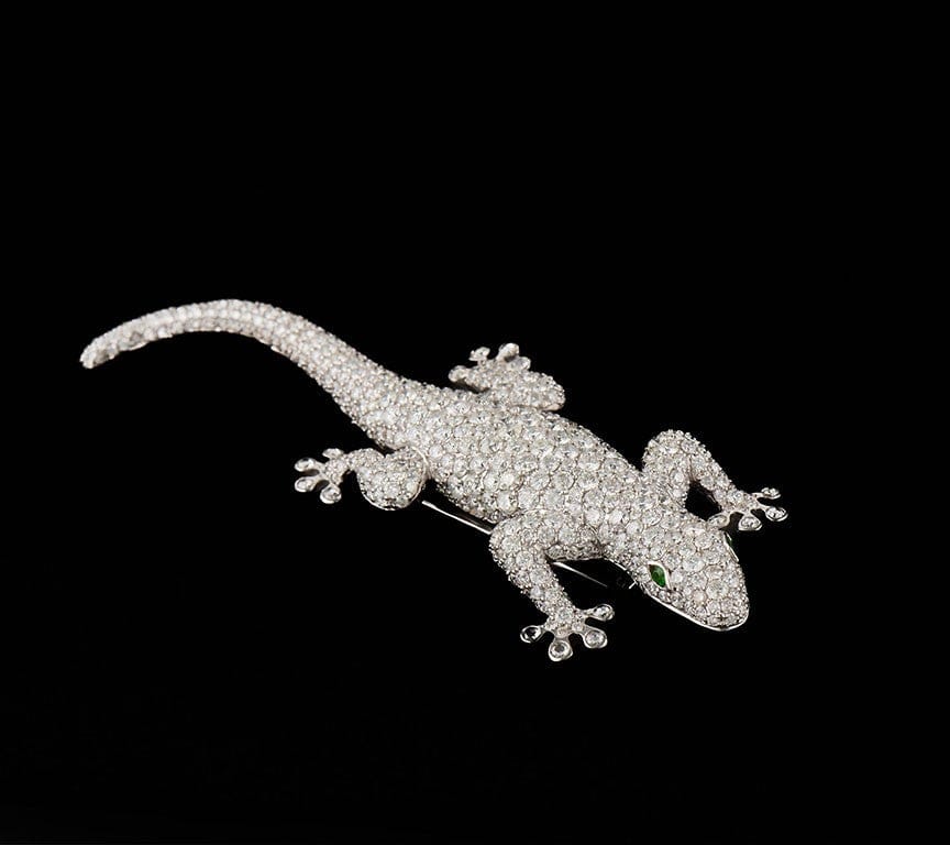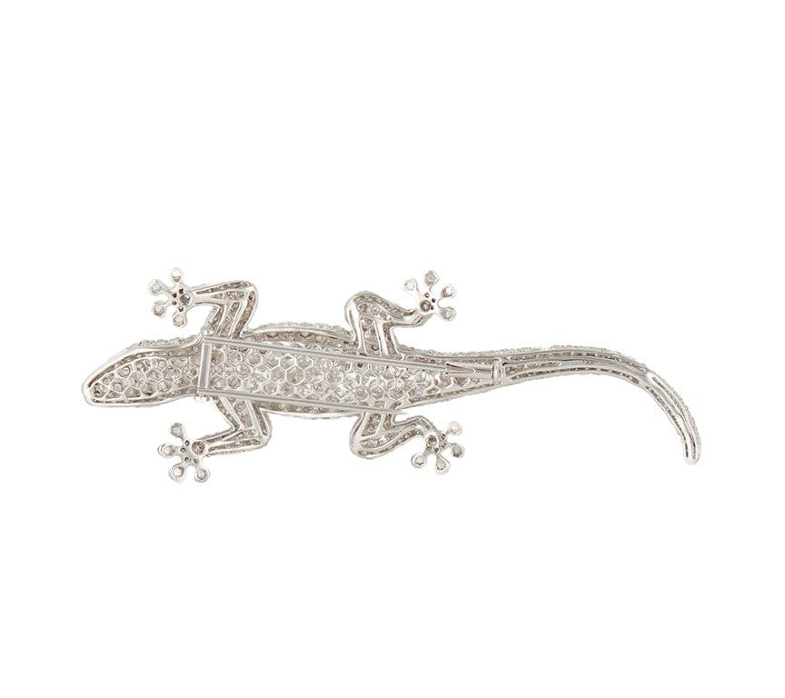 11.80ctw Rose Cut Diamonds and Tsavorite Lizard Pin Brooch in 14K