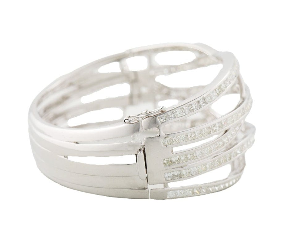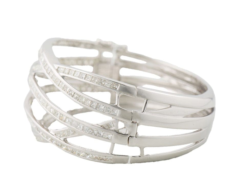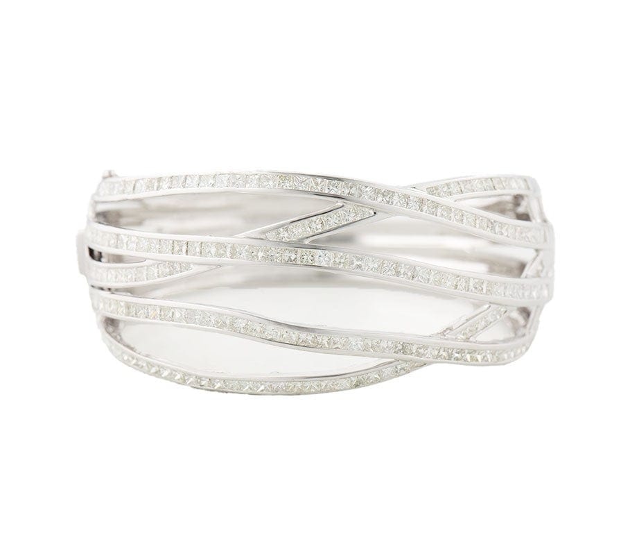 13.0ctw Princess and Round Diamond Crossover and Star Bangle Bracelet in 18K