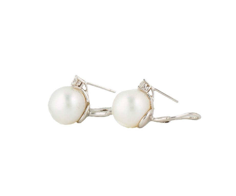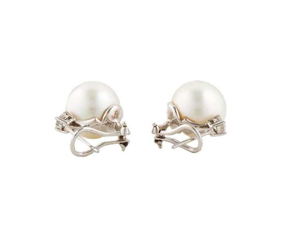 13.50MM South Sea Pearl and 0.50ctw Diamond Omega Back Earrings in 18K