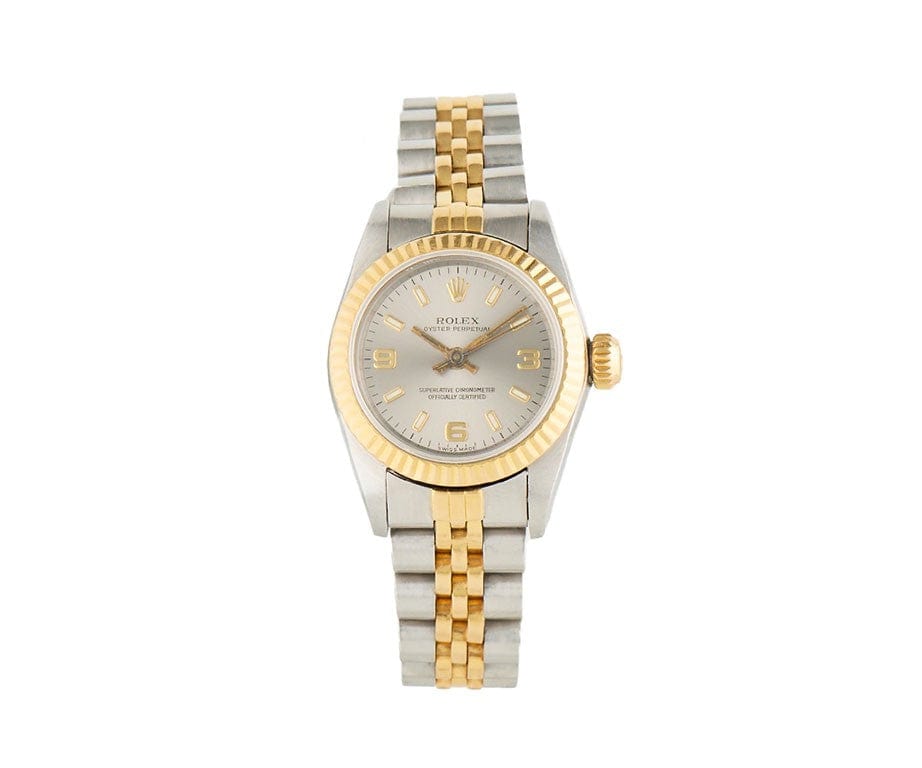 1987 Rolex Oyster Perpetual 67193 24MM Silver Dial Two Tone Ladies Watch