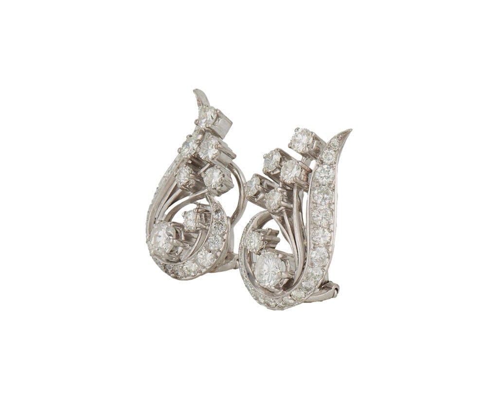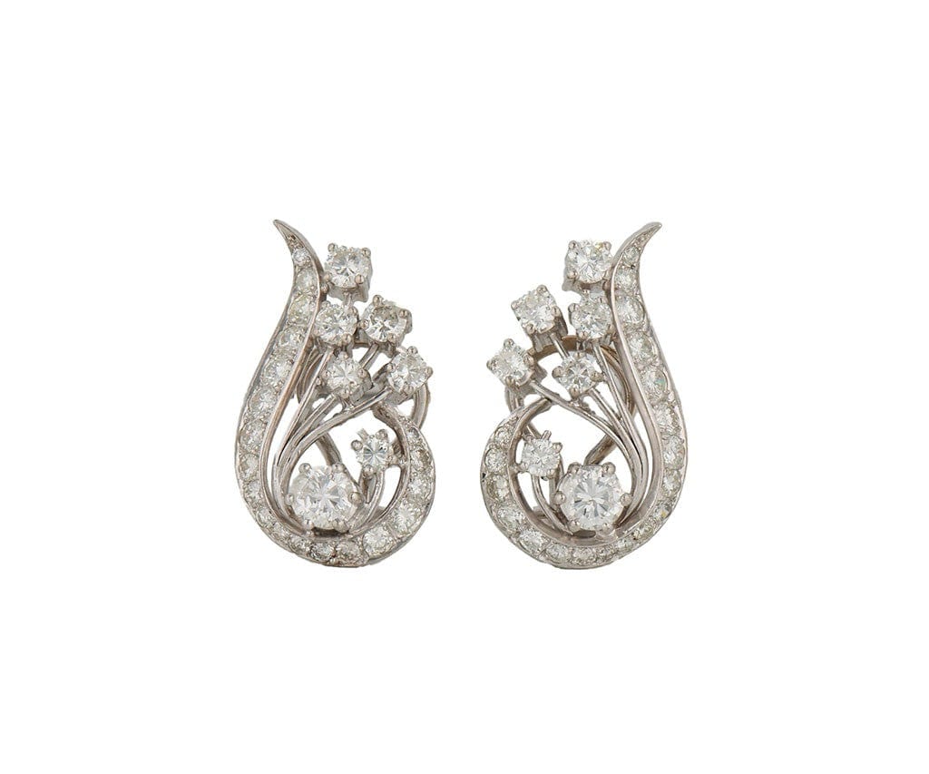2.00ctw Round Diamond Swirl Flower Omega Back Earrings in 18K