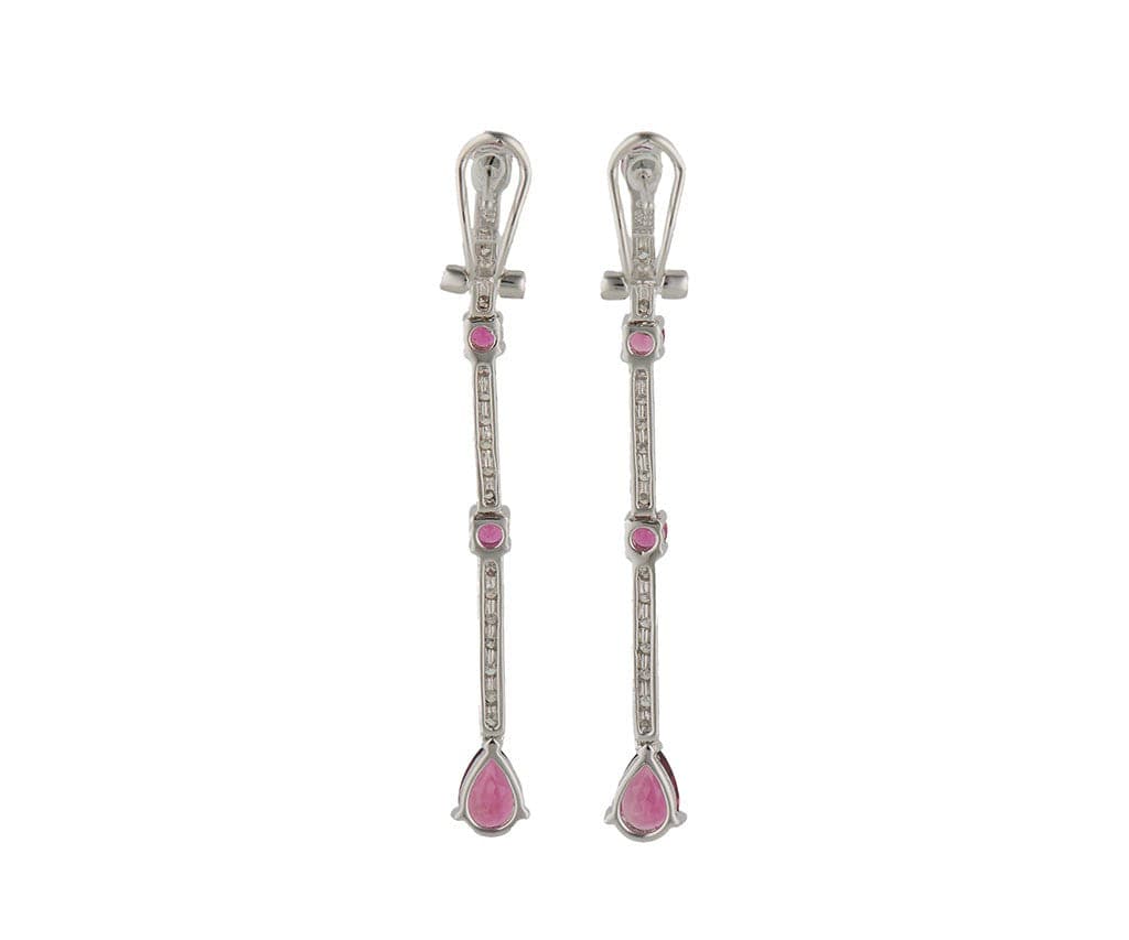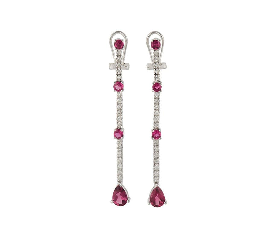 2.00ctw Round & Pear Pink Tourmaline & 0.50ctw Diamond Bar Station Earrings 14K