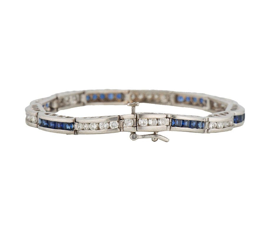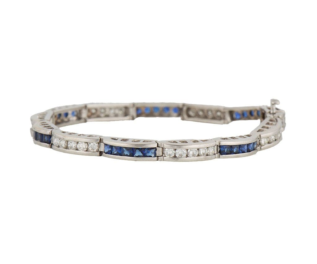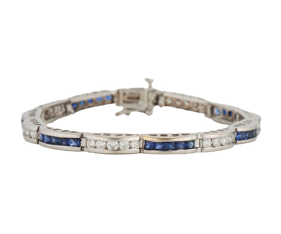 2.25ctw Princess Sapphire and 1.50ctw Round Diamond Station Bracelet in 14K