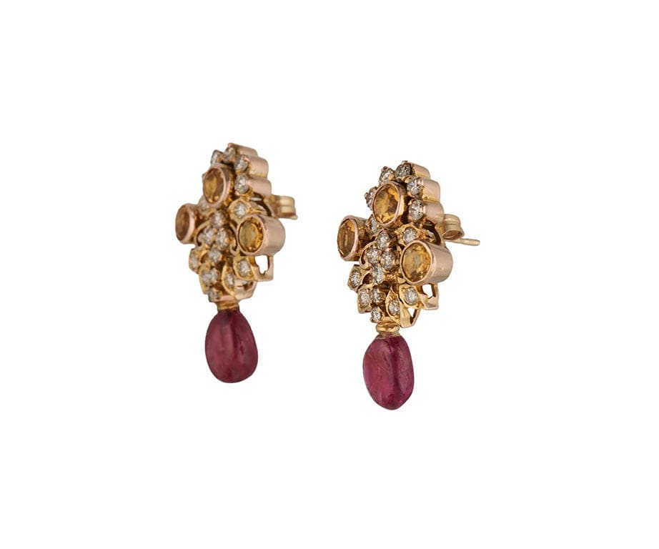 2.50ctw Spinel 0.75ctw Citrine and 0.85ctw Diamond Statement Earrings in 14K