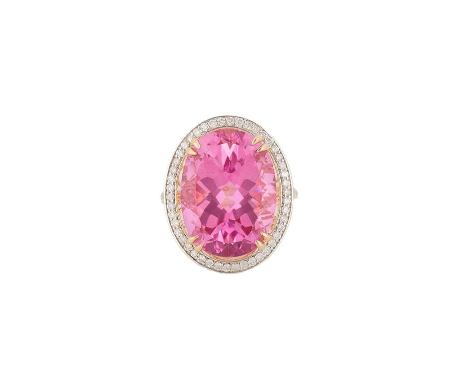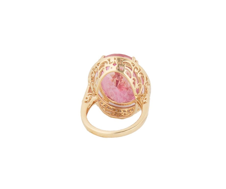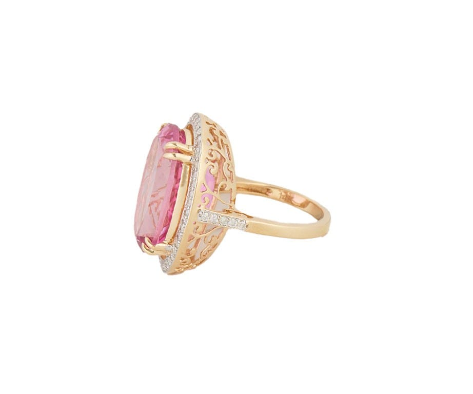 21.0ct Oval Pink Topaz and 0.25ctw Diamond Frame Cocktail Ring in 14K