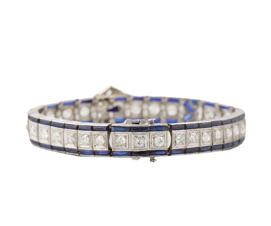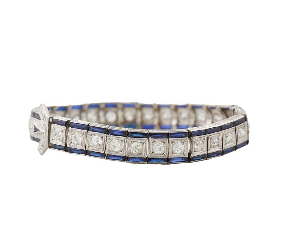 3.00ctw Old European Diamond and Synthetic Sapphire Art Deco Bracelet in 18K