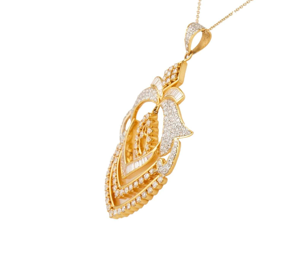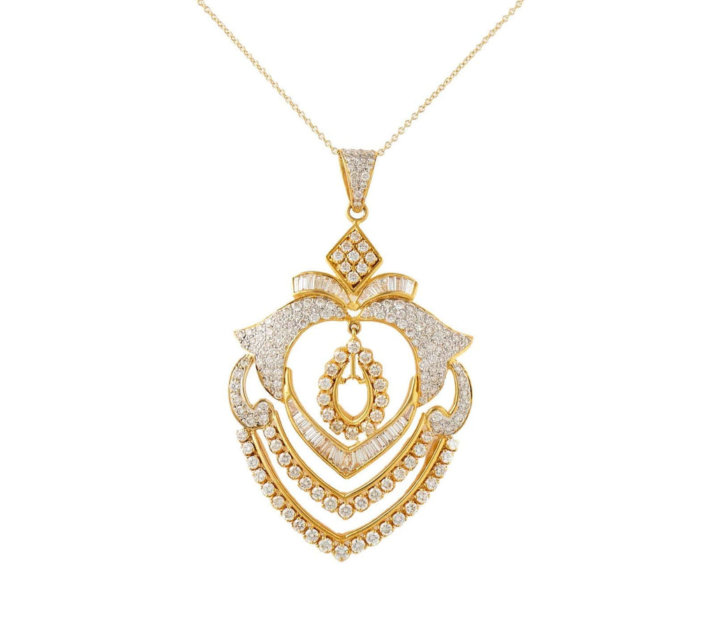 3.70ctw Baguette and Round Diamond Statement Pendant Necklace in 18K