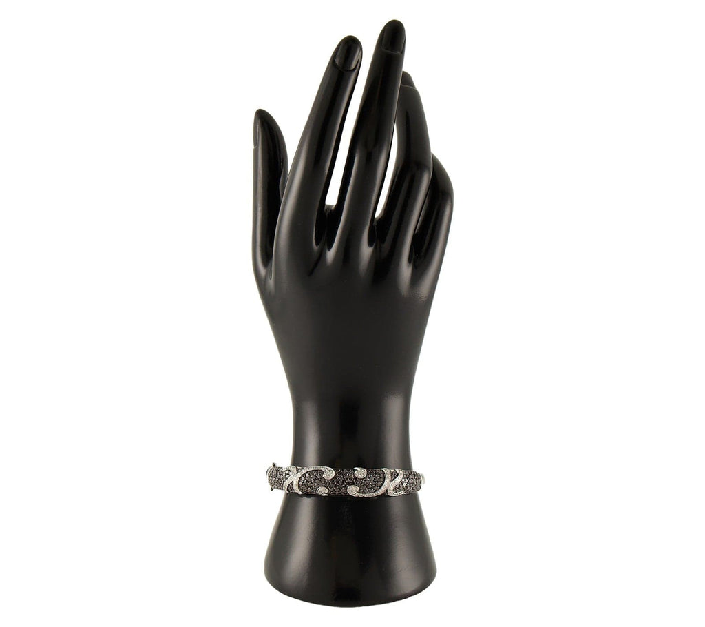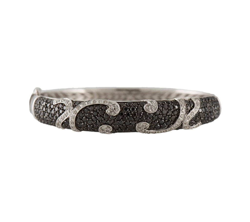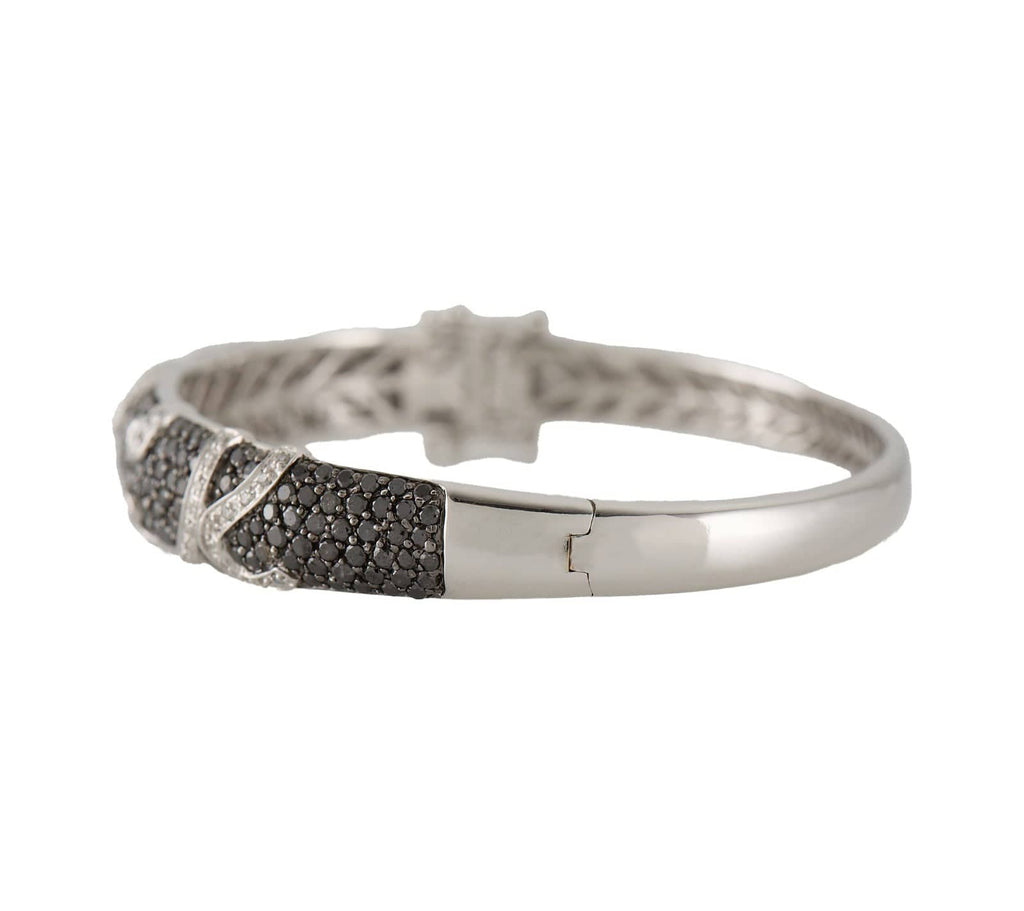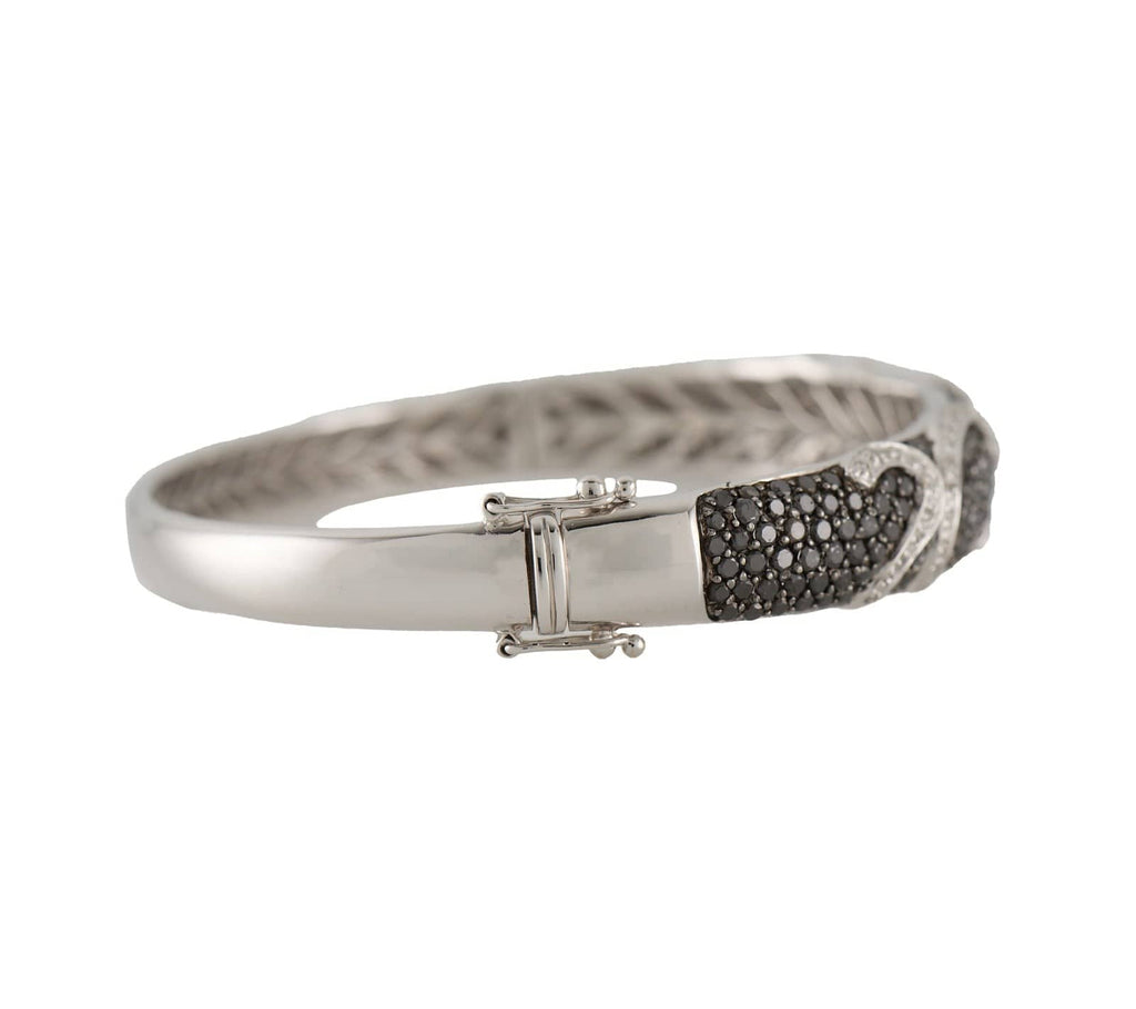 3.95ctw Black and White Diamond Swirl Hinged Bangle Bracelet in 14K