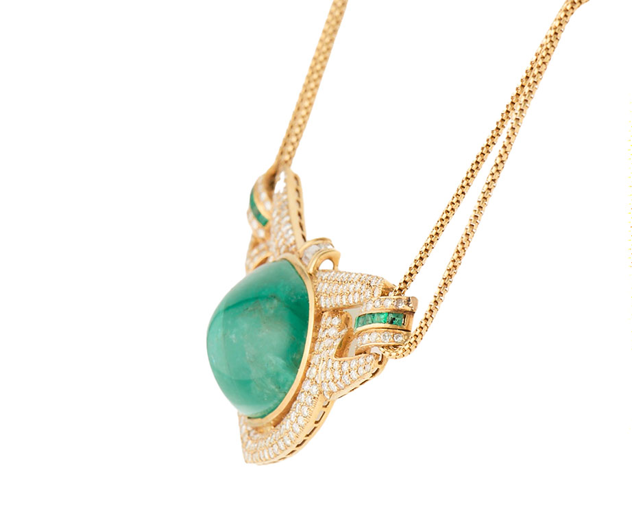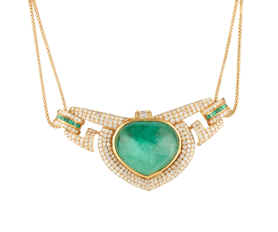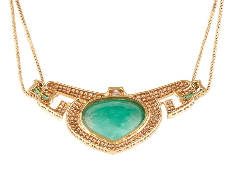 35.55ctw Emerald and 6.00ctw Diamond Necklace in 18K Yellow Gold