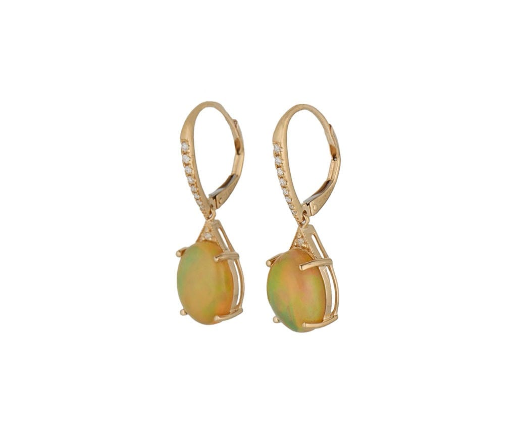 4.50ctw Ethiopian Opal and 0.10ctw Diamond Drop Earrings in 14K