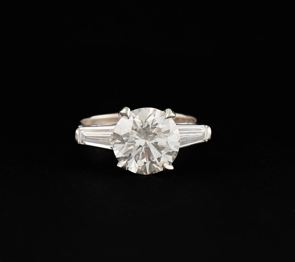 4.50ctw Round and Baguette Diamond Three Stone Engagement Ring in 14K