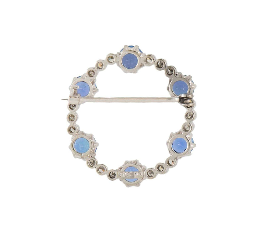 4.50ctw Sapphire and 0.25ctw Single Cut Diamond Circle Brooch in 18K