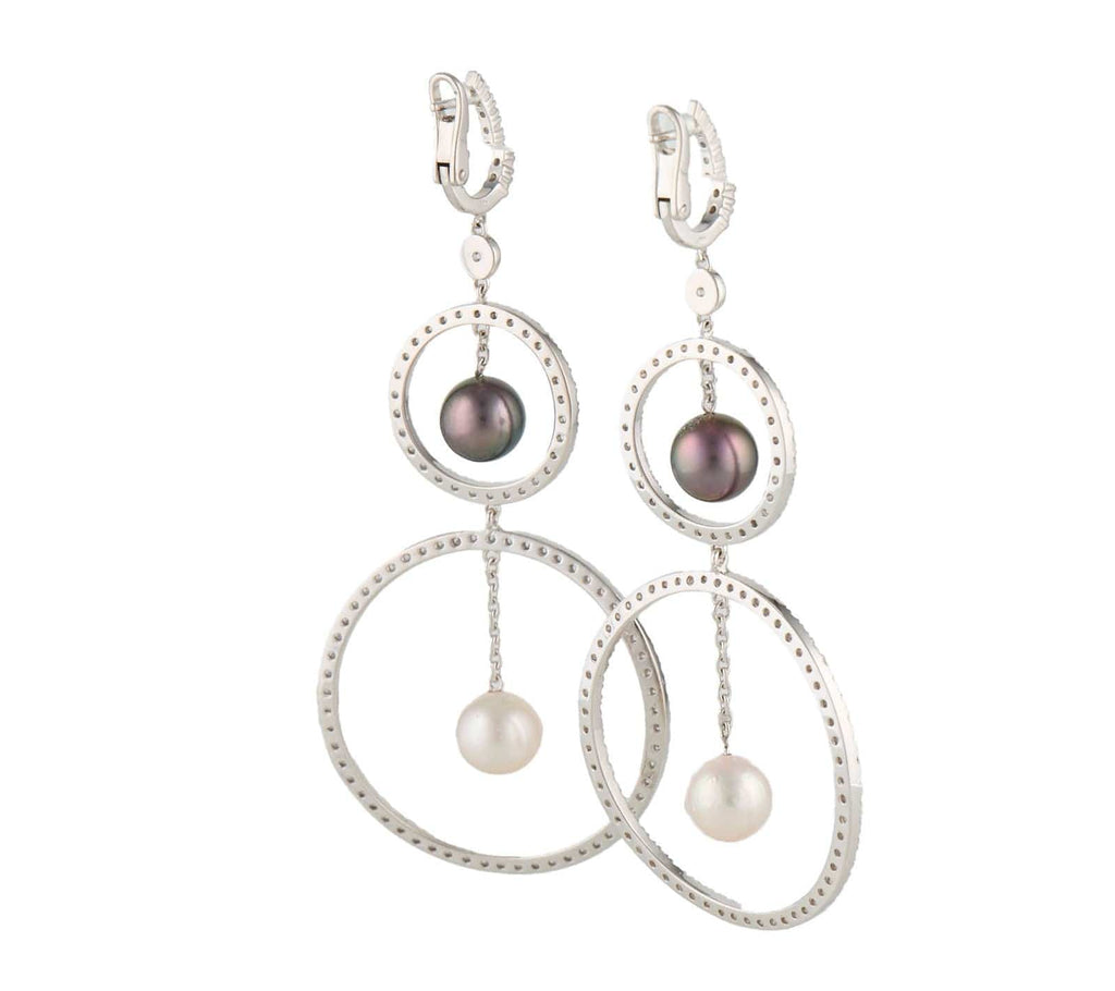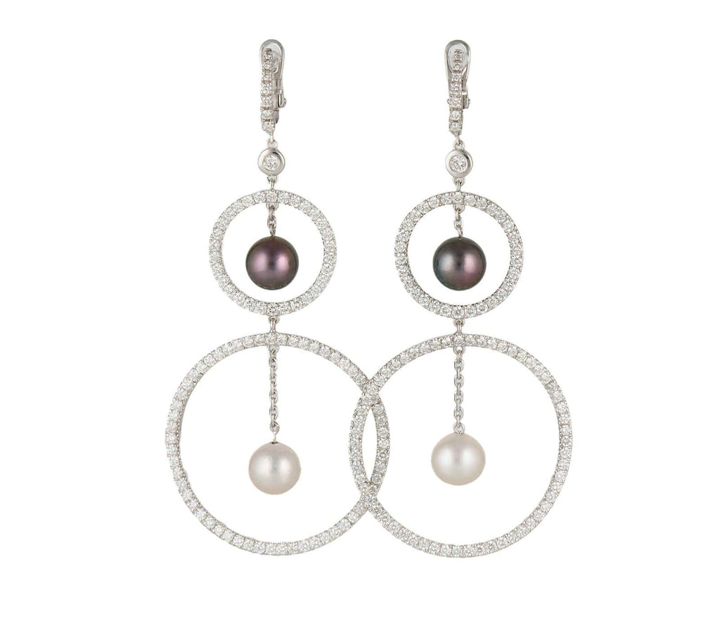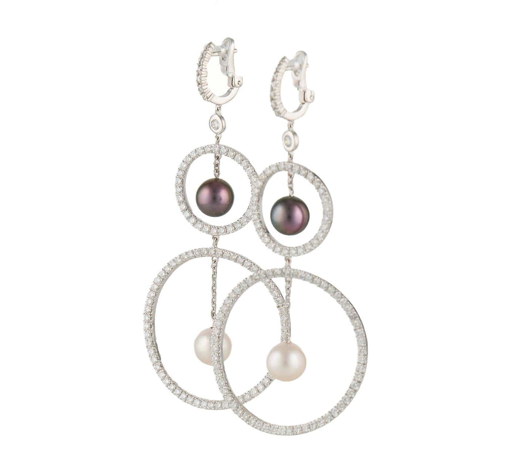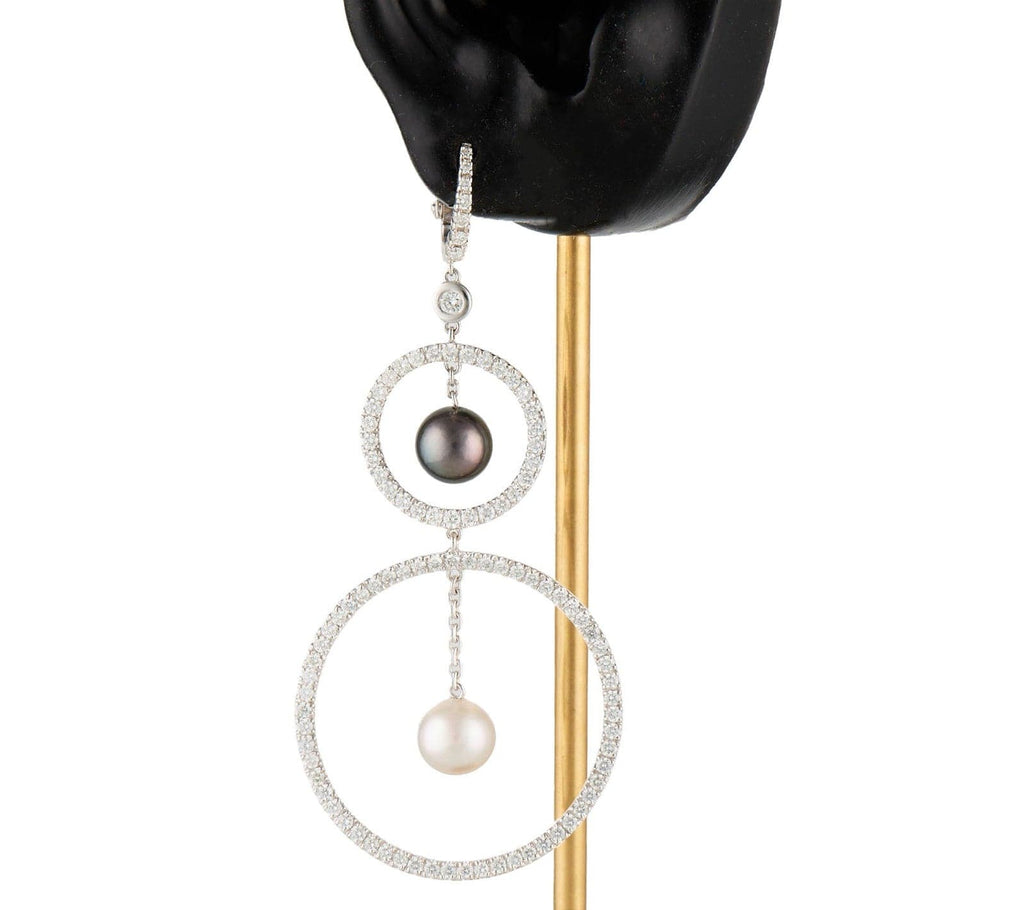 4.95ctw Diamond and Pearl Double Open Circle Dangle Earrings in 18K