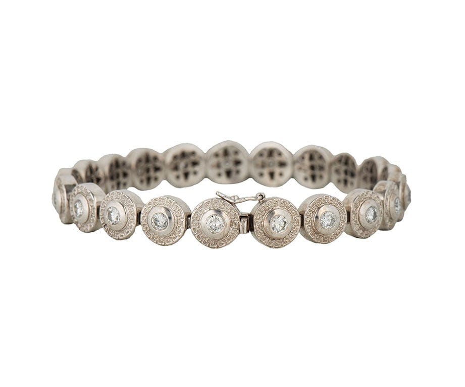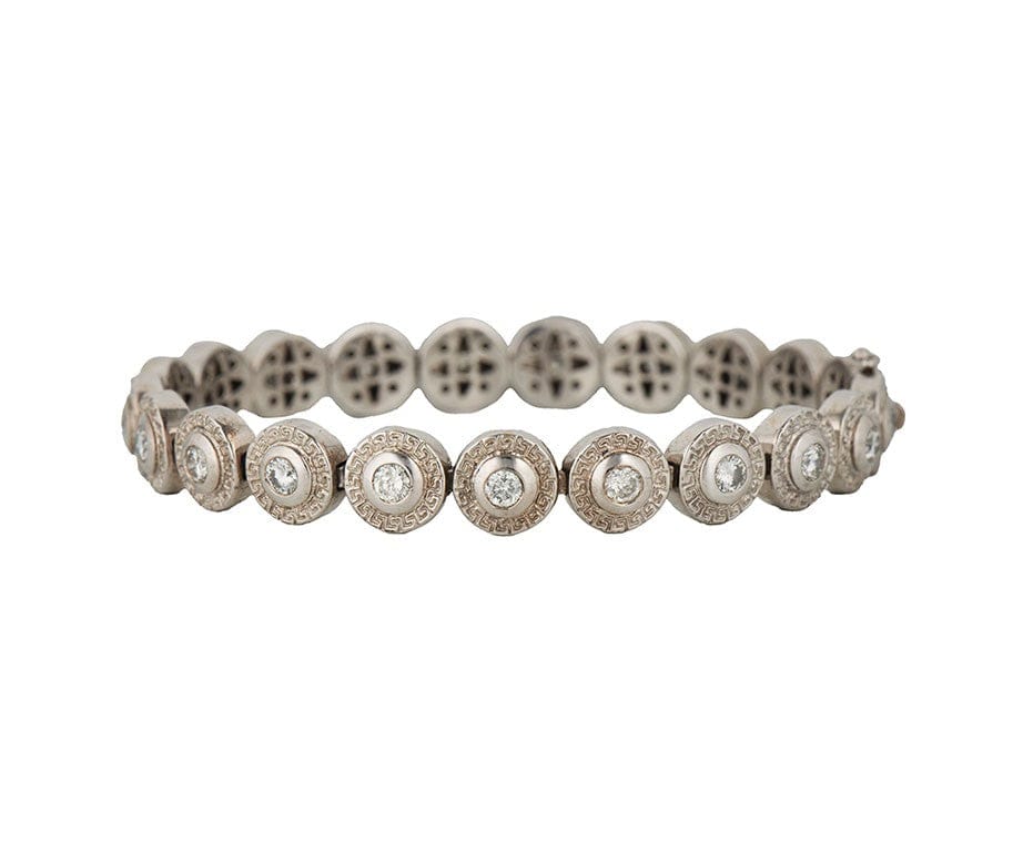 5.25ctw Round Diamond Bezel Set Greek Bezel Station Bracelet in 18K