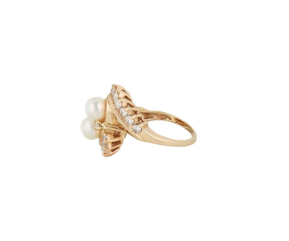 6.0MM Double Pearl and Diamond Crossover Ring in 14K
